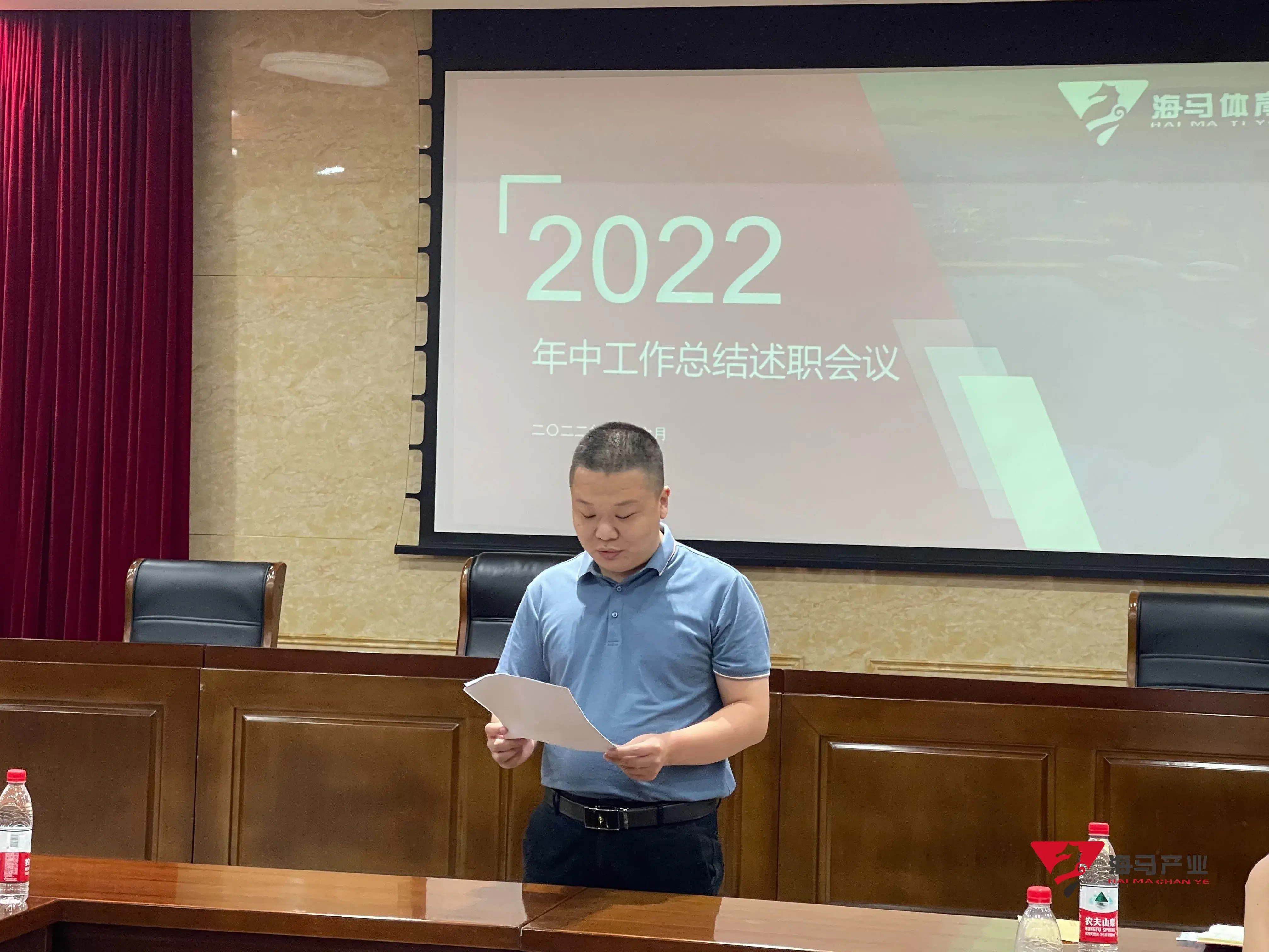 2022年6月29日下午,辉达娱乐文化产业集团在山东省体育中心二楼会议室召开年中工作总结述职会议,会议对上半年工作成果进行了总结汇报,并就下半年重点工作进行部署。总经理王海民出席了本次会议。会议由综合管理部负责人王永健主持。